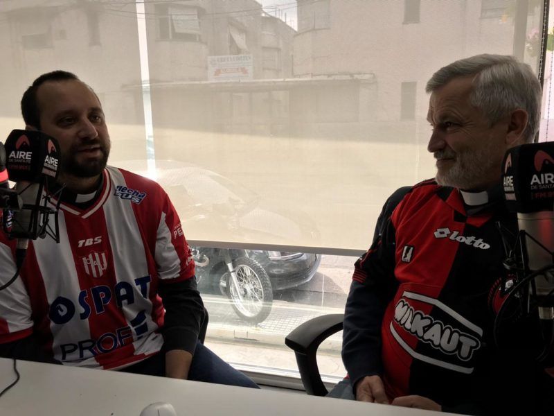 Fuera del aire, Arguinchona y Camussi se cargaron en la previa del clásico entre sabaleros y tatengues, pero siempre con una rivalidad sana y con afecto. “Cuando vivimos bien el fútbol nos ayuda a unirnos, a disfrutar la pasión entre todos”, planteó el párroco de Colastiné.