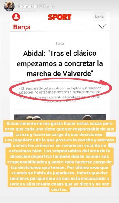 El conflicto entre el plantel del Barcelona y la secretaría deportiva del club llegó a su punto álgido tras el mensaje que Lionel Messi publicó en su cuenta de Instagram apuntando directamente a la otra parte. Además esta tensión puede provocar, en el peor de los casos para el equipo catalán, la salida del argentino del club.