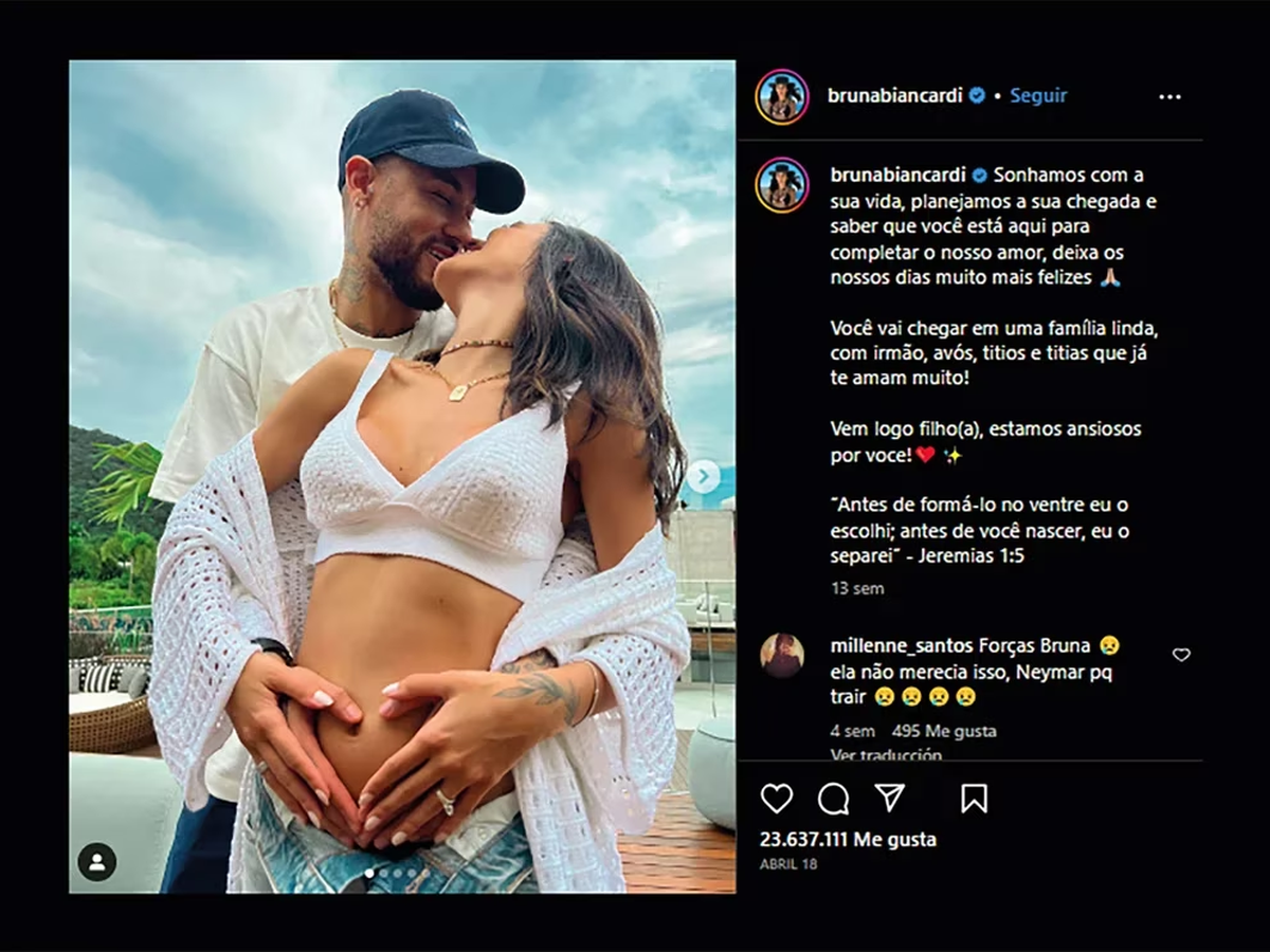 La modelo Bruna Biancardi se expresó en su Instagram. “Soñamos con tu vida, planeamos tu llegada y saber que estás aquí para completar nuestro amor hace nuestros días mucho más felices. ¡Vendrás a una hermosa familia, con un hermano, abuelos, tíos y tías que ya te quieren mucho! Ven pronto hijo, te esperamos con ansias!”.