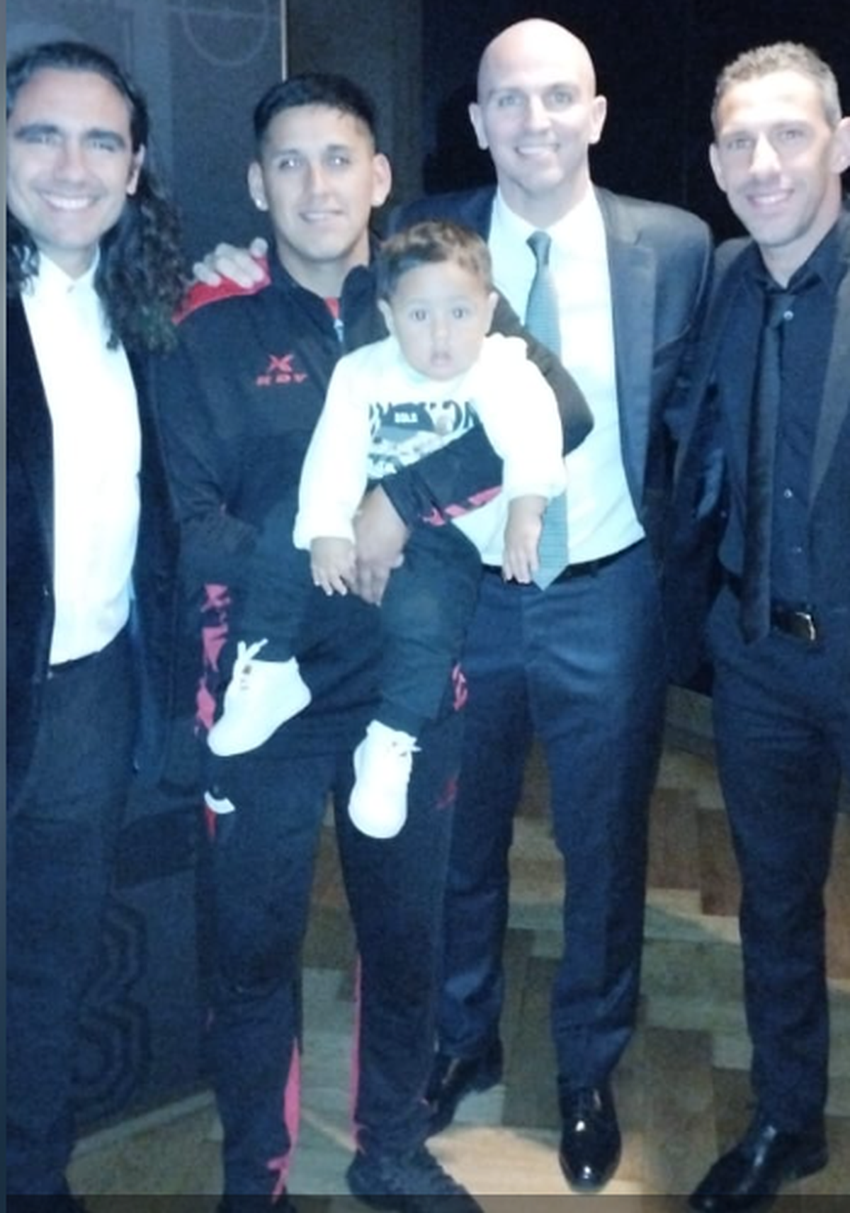 Tras escuchar el anuncio que decía que ganó el premio, "Toto" subió al escenario con el otro gran protagonista del video que lo llevó a ganar el premio: su hijo Tiziano, que tenía dos meses el día que se grabó el video viral.