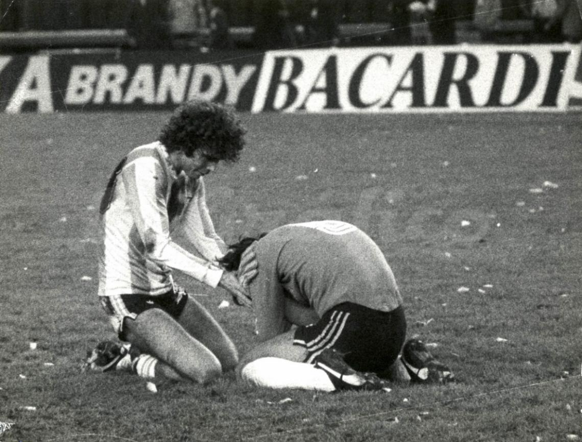 La historia fue cuando terminó el partido y comenzaron los festejos. Fillol y Tarantini se abrazan, se les suma un hombre sin brazos. Ricardo Alfieri, disparó con su cámara y logró una imagen legendaria.