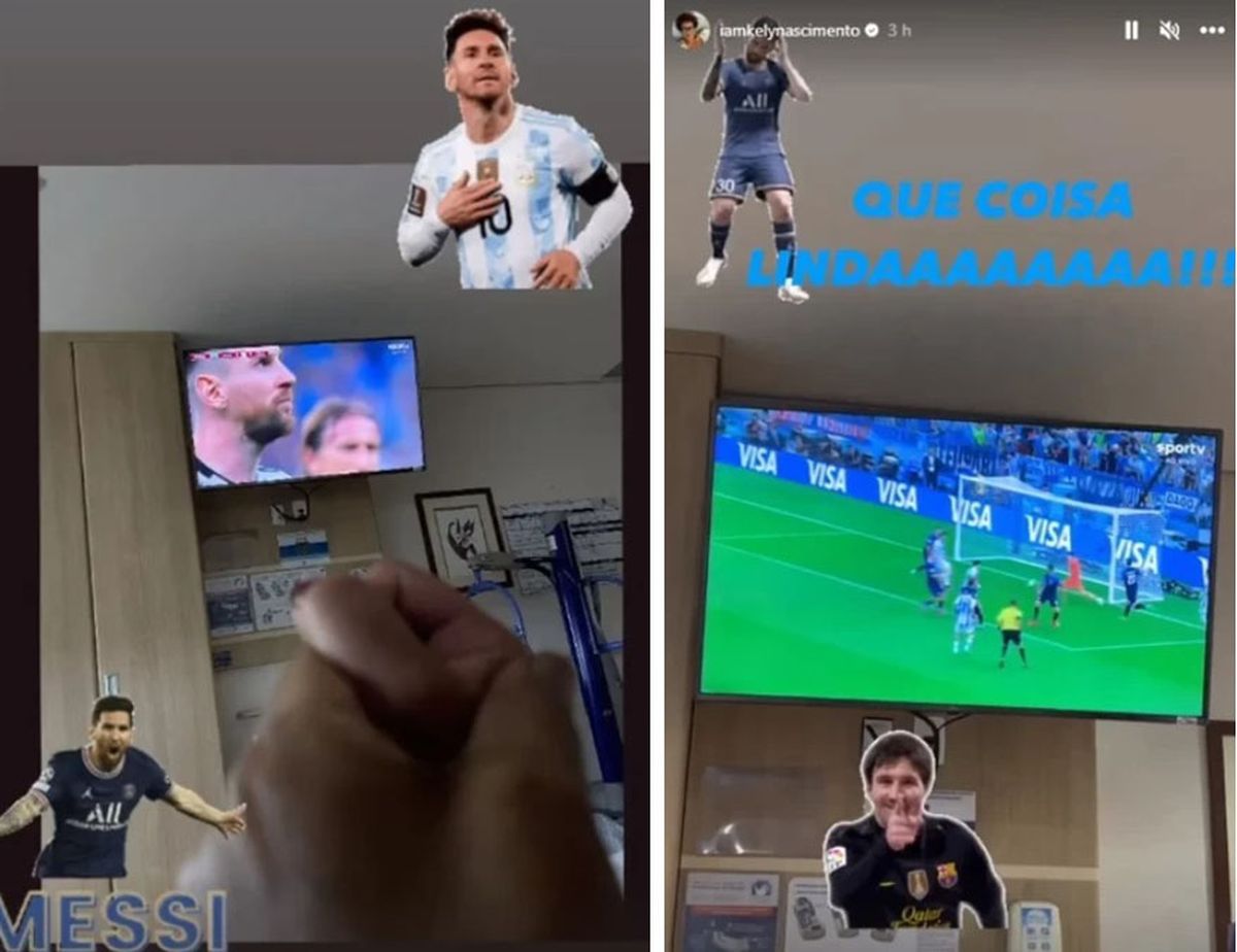Fue su hija, Kely Nascimento, la que publicó una story en su cuenta de Instagram en la que se ve su mano y la de su padre entrelazadas, con un televisor de fondo que sintonizaba el encuentro entre el elenco nacional y el conjunto croata. En la misma, sumó unos gif de Leo con la camiseta de PSG y Argentina.