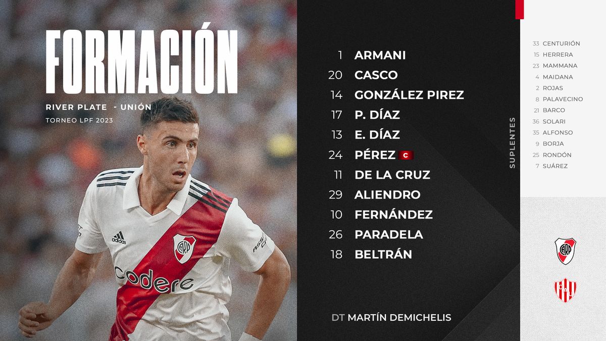 20:47 | River confirmó el once titular para recibir a Unión