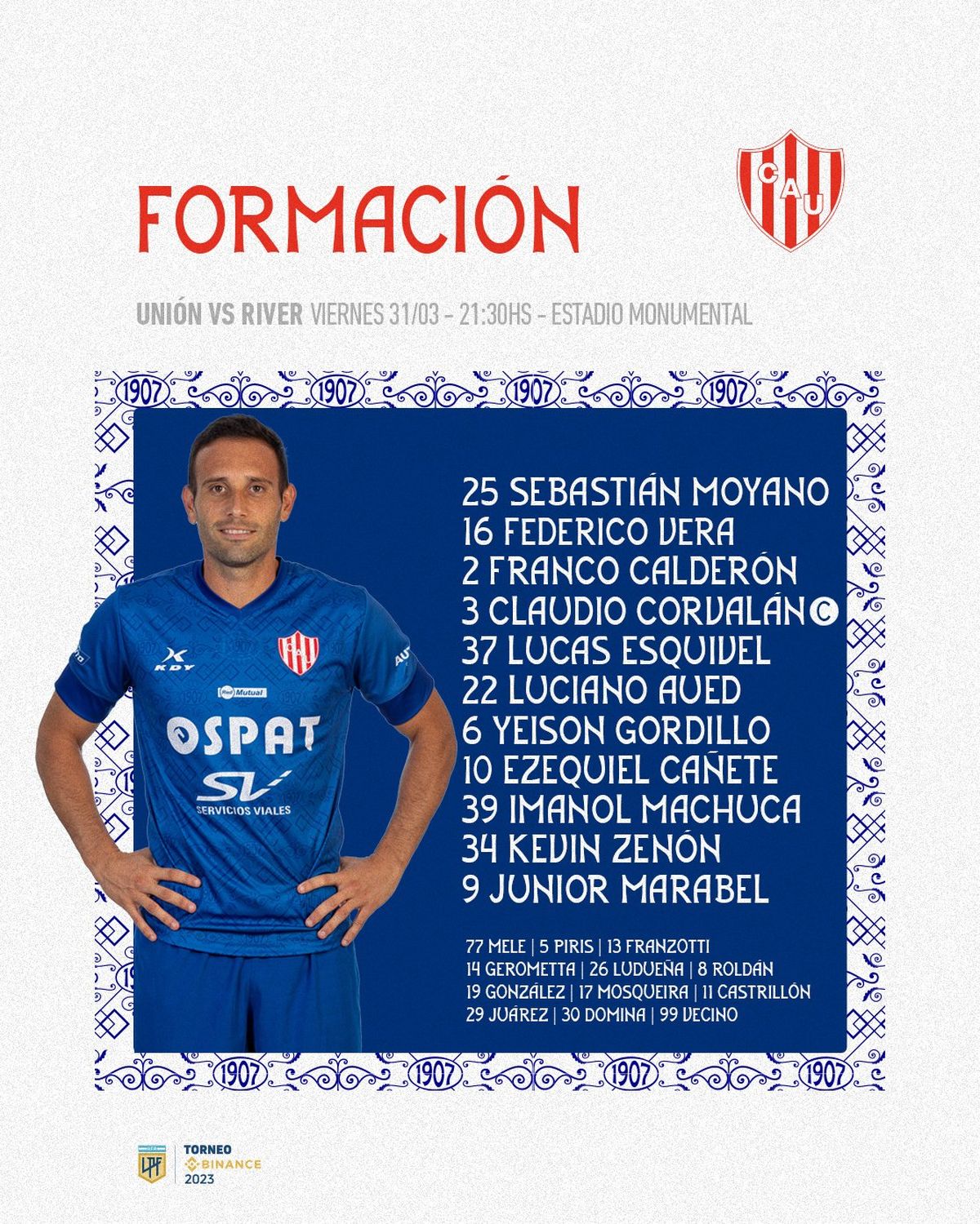 Cómo forma Unión para enfrentar a River Plate