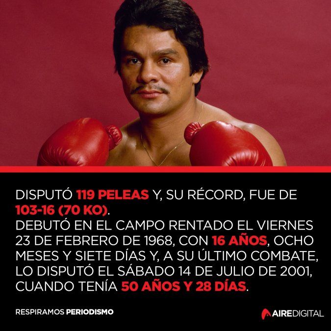 Es considerado uno de los mejores boxeadores de todos los tiempos y, desde que nació, solo aprendió una cosa, y que hizo muy bien durante más de tres décadas: pelear. Pasó por ¡11 categorías! (de gallo a mediopesado) y logró cinco coronas mundiales en cuatro divisiones. Jamás perdió en liviano (su peso natural) y es el único púgil de la historia que ganó por nocaut en todos los rounds, del 1º al 15º. Hoy, quien combatió en dos siglos (debutó en 1968 y se retiró en 2001) e inmortalizó la frase “viejo es el viento y aún sigue soplando” (en una magnífica respuesta que les dio a quienes le pedían que se retirase), cumple 69 años.