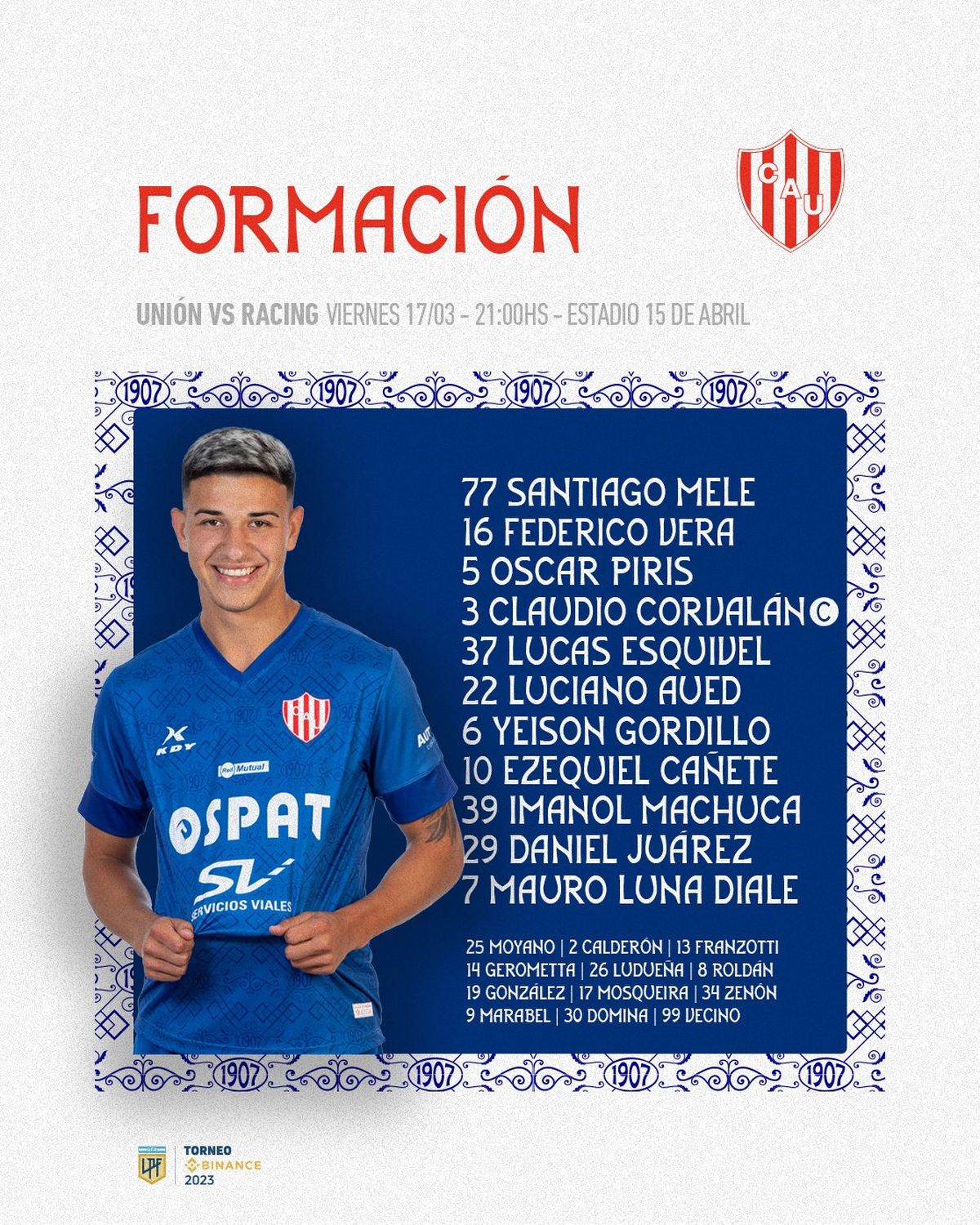 Unión confirmó en redes sociales el once titular para enfrentar a la Academia, por la Liga Profesional.