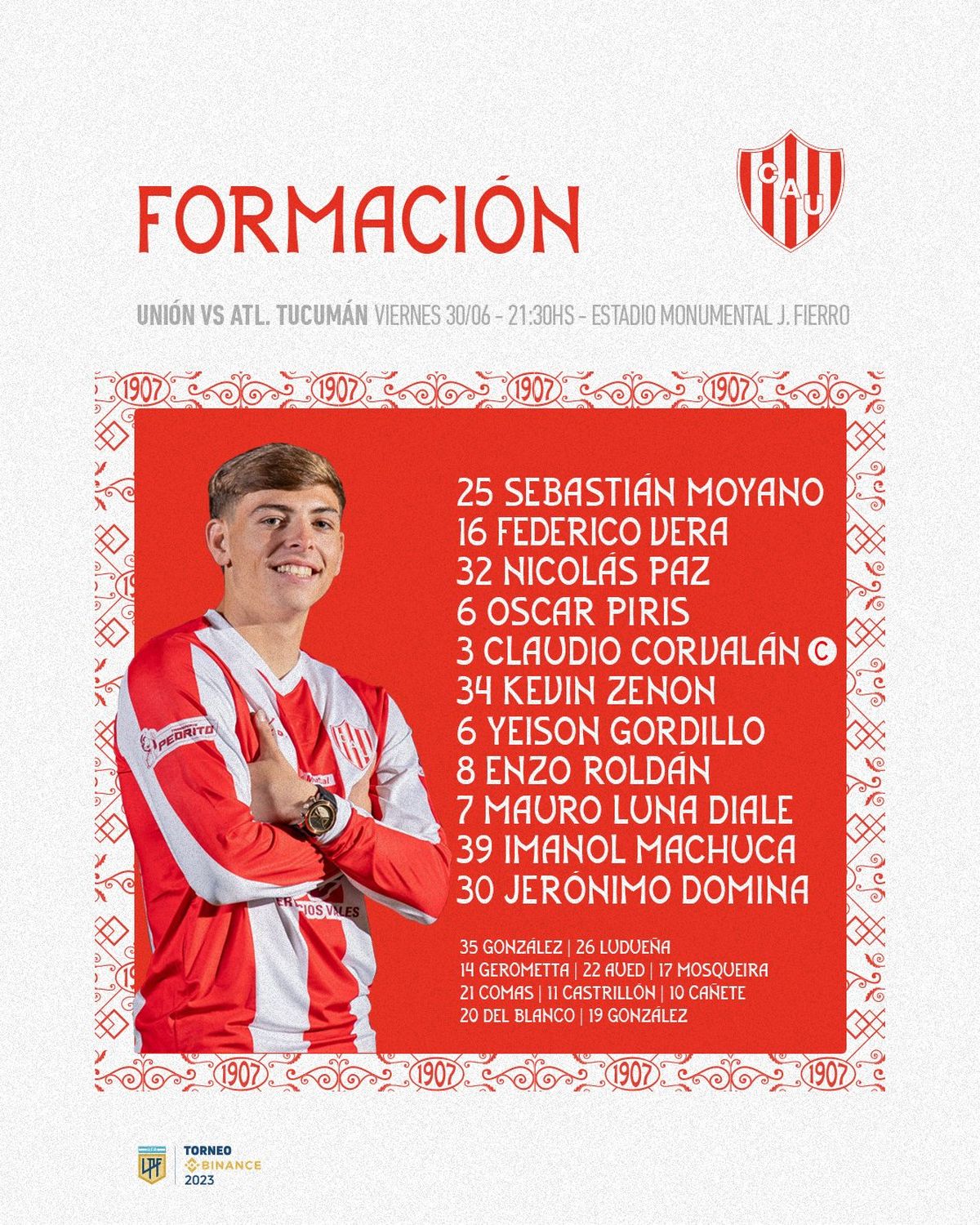 - Unión: Sebastián Moyano; Federico Vera, Nicolás Paz, Oscar Piris y Claudio Corvalán; Kevin Zenon; Enzo Roldán, Yeison Gordillo y Mauro Luna Diale; Jerónimo Domina e Imanol Machuca. DT: Cristian "Kily" González.