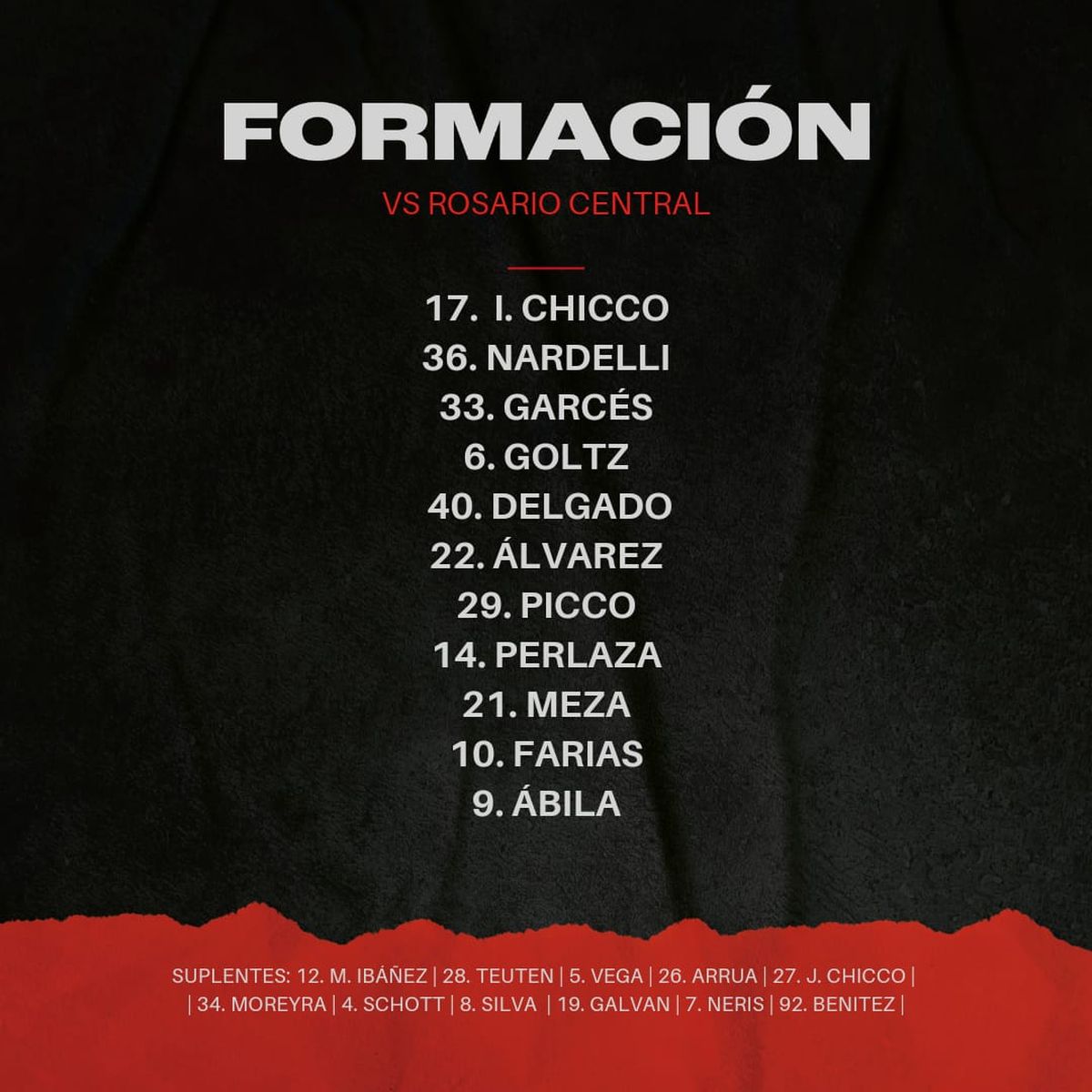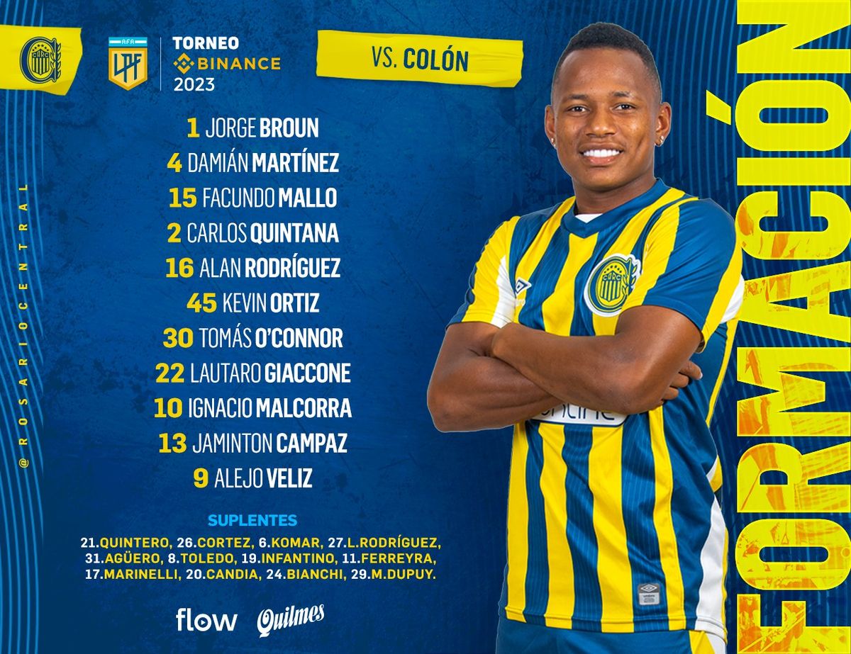 - Rosario Central: Jorge Broun; Damián Martínez, Facundo Mallo, Carlos Quintana y Alan Rodríguez; Kevin Ortiz y Tomás O'Connor; Lautaro Giaccone, Ignacio Malcora y Jaminton Campaz; y Alejo Véliz. DT: Miguel Ángel Russo.