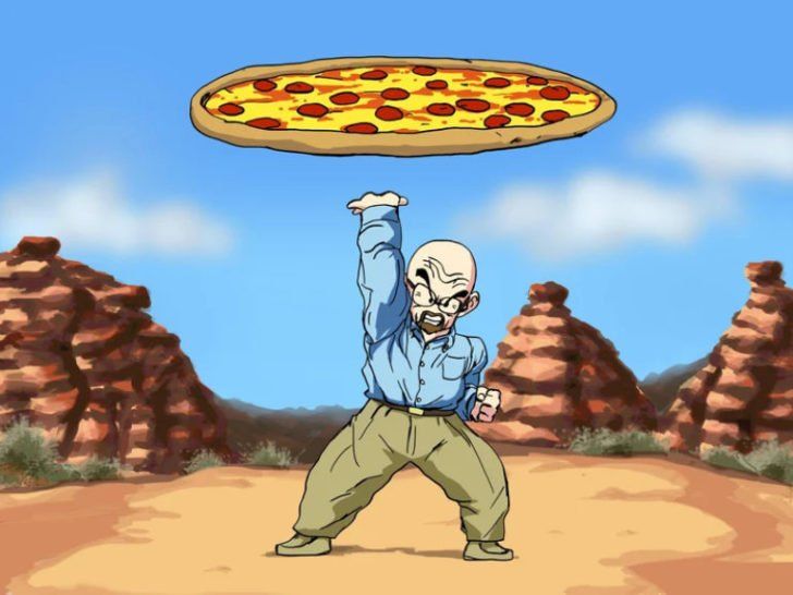 Por suerte, lo anterior no implica que algunos artistas no tengan la creatividad para idear una mezcla entre ambos programas. Tal es el caso de RibeyeWaffleFries, un dibujante que encontró la manera de que el profesor Walter White se convierta en el luchador Krilin. El ilustrador presenta un dibujo que muestra el híbrido entre ambos personajes. Podemos ver cómo ese Krilin está por para lanzar el ataque "Disco Destructor" (kienzan), pero en lugar de disco, sostiene en el aire una pizza enorme. La imagen en cuestión es tan ingeniosa que se viralizó en pocos días entre los fanáticos de ambas series.