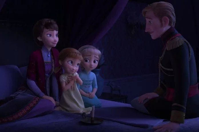 «Todo comienza con un disparador, que es el recuerdo de un cuento que el padre de Anna y Elsa les contaba cuando eran niñas acerca de un bosque encantado que él había conocido cuando era pequeño», relata Lee. «En esa visita del rey al bosque, algo malo pasó y apenas pudo sobrevivir; nunca supo quién ni cómo fue salvado, solo que escuchó una voz que lloraba y, al adentrarse, una niebla mágica lo envolvió todo», comenta.