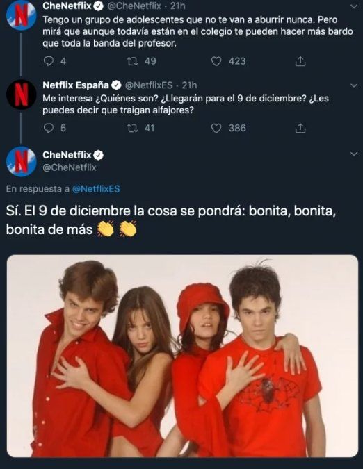 "Me interesa ¿Quiénes son? ¿Llegarán para el 9 de diciembre? ¿Les puedes decir que traigan alfajores?", respondieron desde Netflix, según informa Ciudad.