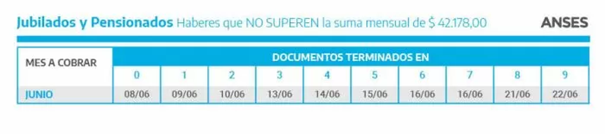 ANSES activará el próximo miércoles 8 de junio, el calendario de cobro con aumento del 15% para jubilados con haberes inferiores a $ 42.178 y según la terminación del DNI.