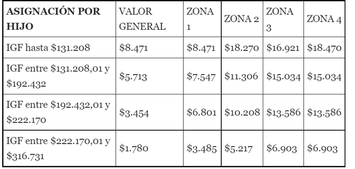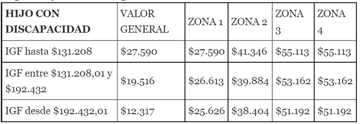 En el caso de los titulares de Asignación Familiar por Hijo con Discapacidad, los montos son los mismos, pero no hay tope de ingresos para acceder.
