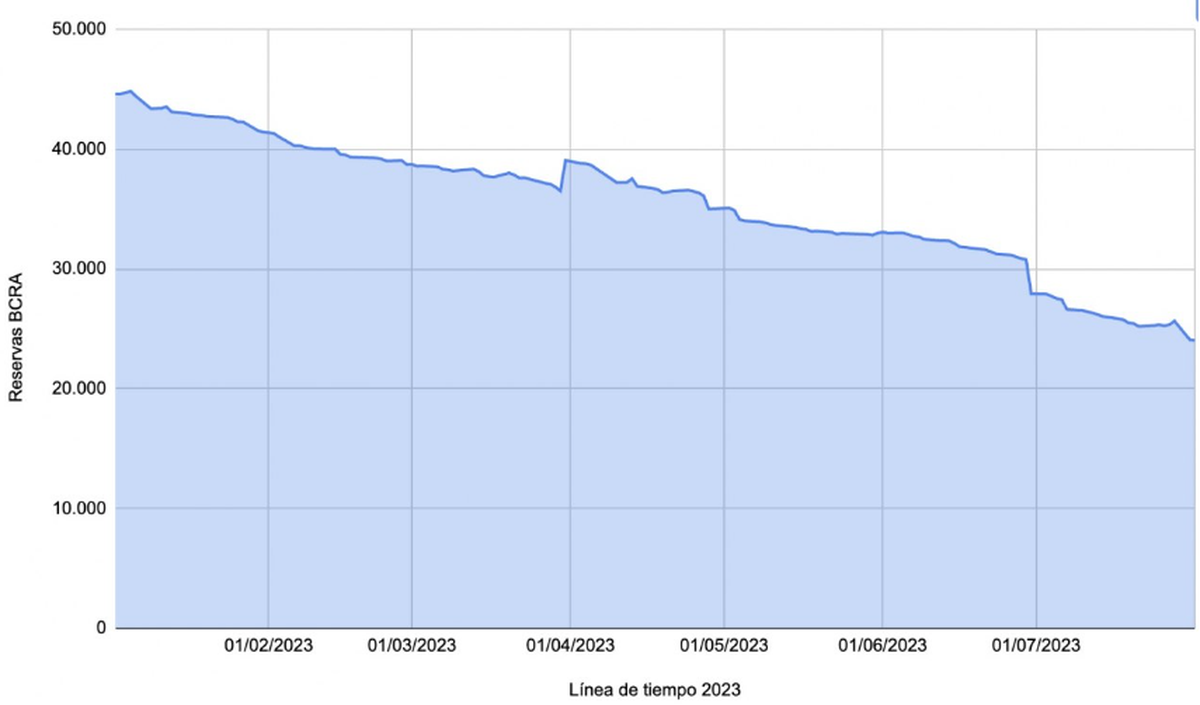 Las fuentes oficiales indicaron en off the record que no están dispuestos a poner en juego más reservas del Banco Central de la República Argentina, que según informa la entidad rectora, ascienden a US$24.145 millones. El acuerdo con el FMI permitió despejar pagos de capital hasta después de las elecciones.