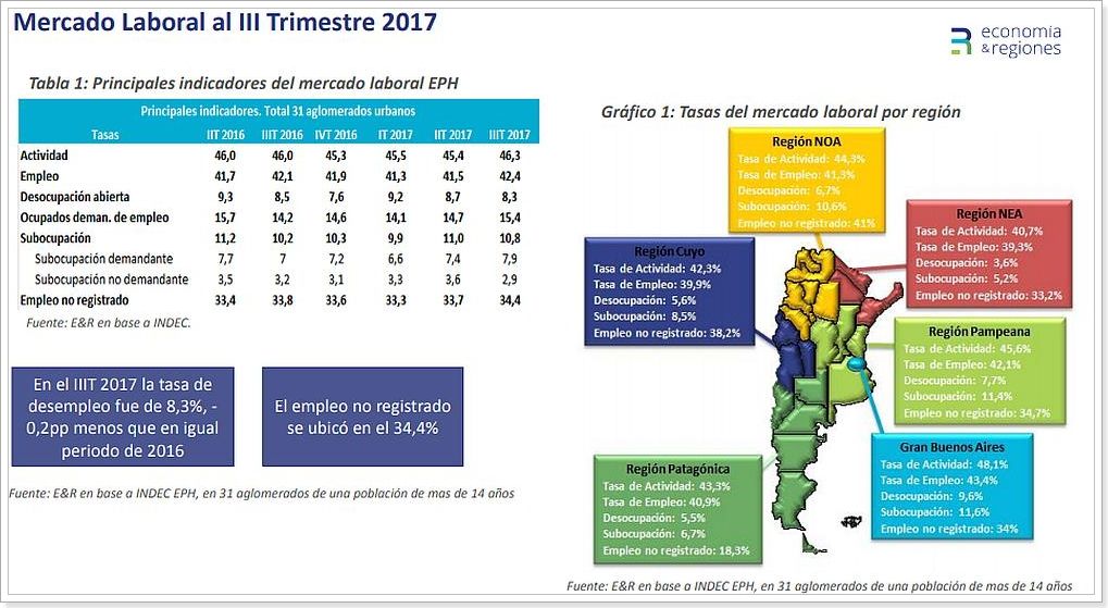 La consultora sumó los datos de la tasa de empleo no registrado que a esa fecha se ubicaba en 34,4% con una suma de 0,6 puntos porcentuales respecto al mismo período del año 2016.