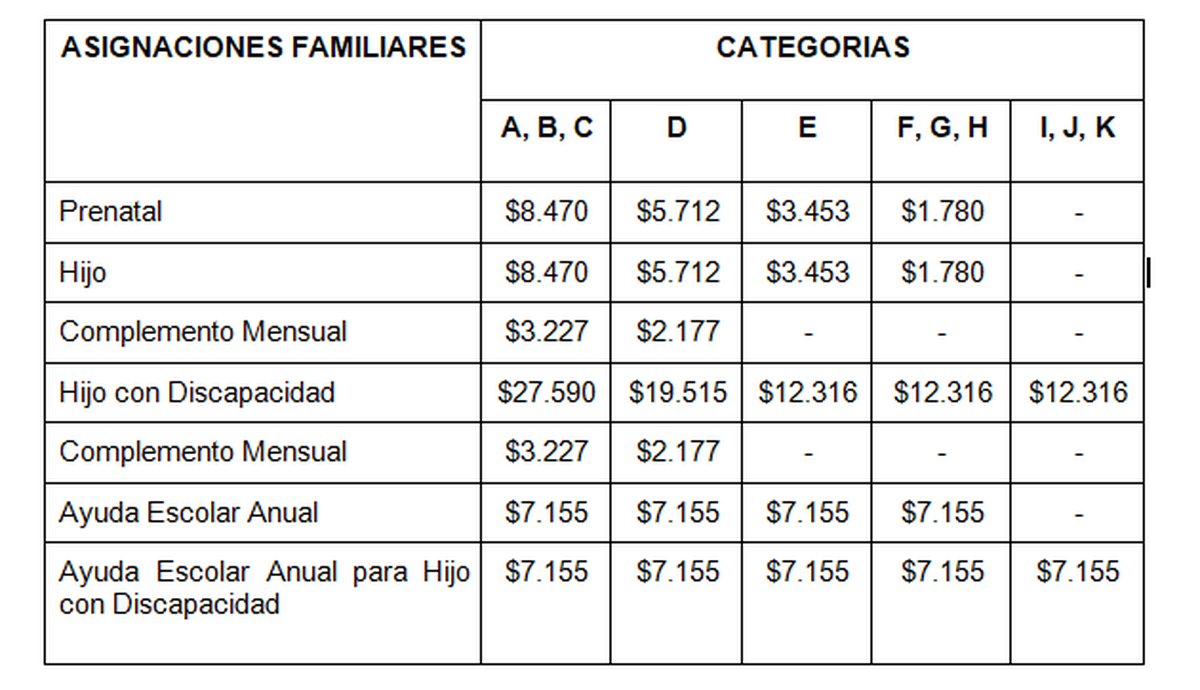 - Ayuda Escolar Anual para hijo con Discapacidad: se cobra una vez al año, sin límite de edad.