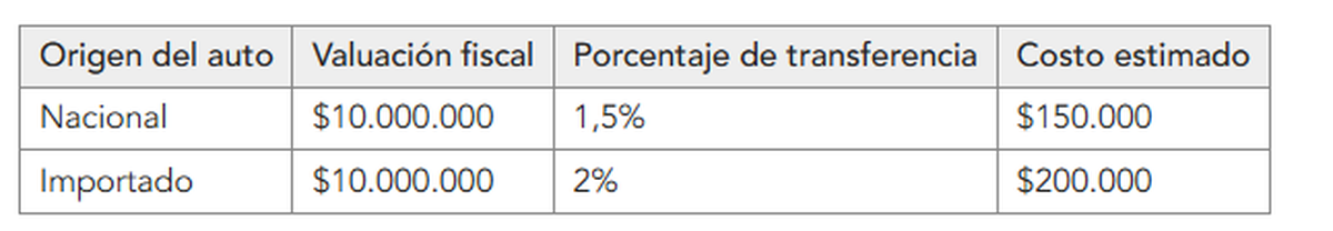 Por ejemplo, transferir un auto valuado en $10 millones cuesta $150.000 si es nacional, y $200.000 si es importado. A este monto deben sumarse aranceles adicionales como la expedición del título, las cédulas, el Formulario 08 y los impuestos provinciales, que dependen de cada jurisdicción.