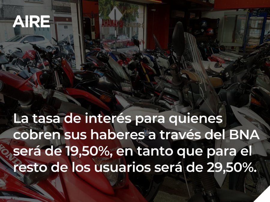 De esa forma, una moto de $150.000 pagaría una cuota inicial de $4.180,46 en el caso de un cliente que perciba sus haberes en el BNA, mientras que para el resto de los clientes la misma ascendería a $5.322,73, indicó el banco en un comunicado.