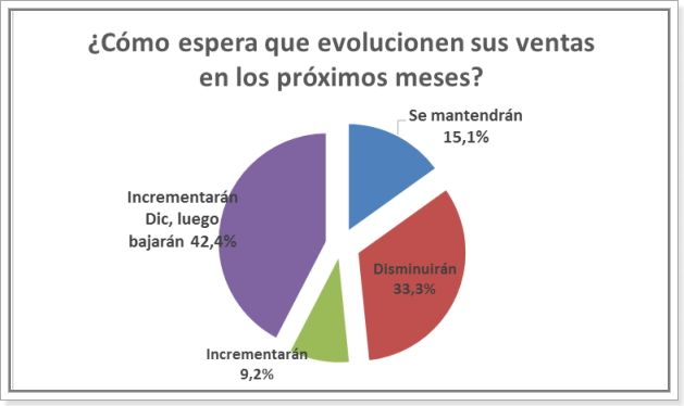 Pero cabe señalar que la respuesta mayoritariamente recibida (42,4%) cree que las ventas mejorarán sólo en el transcurso de diciembre, aunque vislumbran que luego, que durante enero y febrero, volverán a bajar, esperando por lo tanto un escenario por demás complicado para los primeros meses del próximo año.