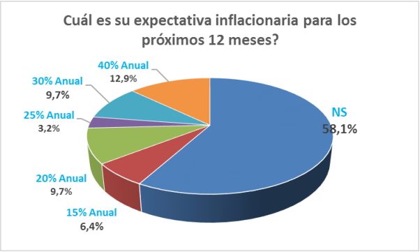 Consultados sobre las perspectivas de inflación para los próximos 12 meses, la mayoría de los encuestado mostró un alto nivel de incertidumbre sobre el futuro.