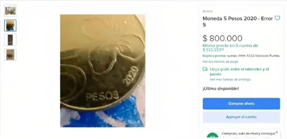El error se encuentra en la cara que muestra el valor, específicamente en la palabra “pesos”. La letra “S” se distingue claramente de las demás monedas de cinco pesos. Debido a la rareza de estos ejemplares, se ofrecen a un precio considerable y se pueden encontrar a la venta en la plataforma de compra y venta de Mercado Libre.