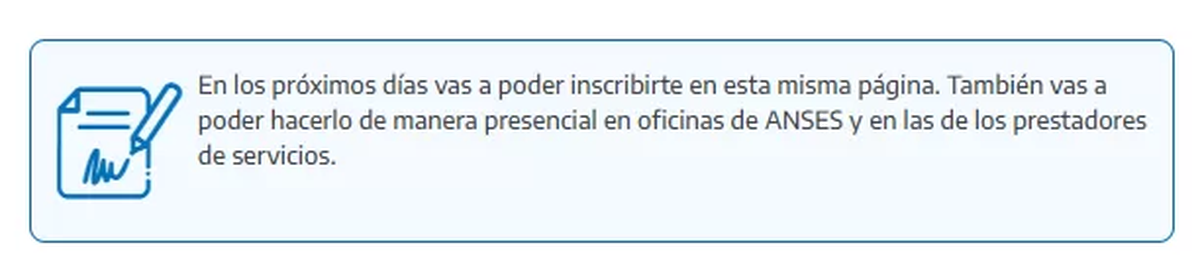 Además del formulario online, las y los usuarios también podrán realizar la inscripción en una oficina de la Administración Nacional de la Seguridad Social (ANSES) o en la de las prestadores de servicios.