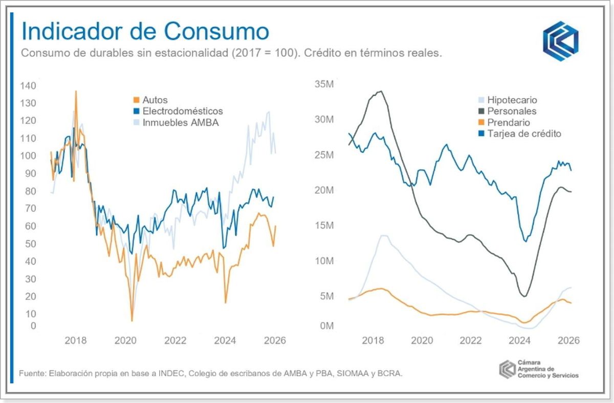 En paralelo, algunos segmentos como electrodomésticos logran sostener cierta estabilidad, pero otros, como el mercado inmobiliario, dejaron de traccionar la demanda.
