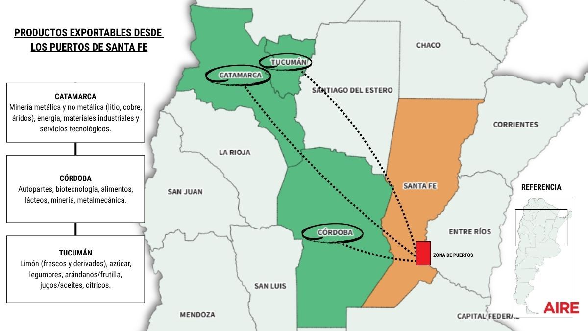 Desde limones, hasta litio y autopartes. Estos son, apenas, algunos de los productos provenientes desde Córdoba, Catamarca o Tucumán, que podrían ser exportados a través de los cuatro puertos públicos de la provincia de Santa Fe.