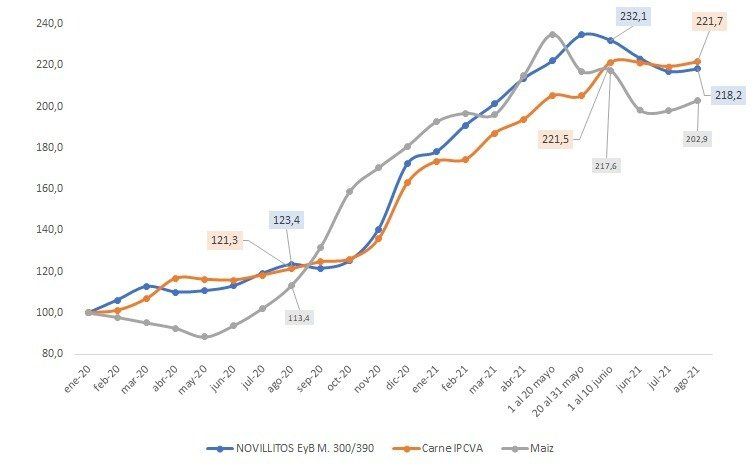 Pero el cupo que la Mesa de Enlace llama cepo (junto a "la grieta" otro hit del neoliberalismo cultural) y pone un techo promedio del 54% del volumen mensual exportado en el último semestre de 2020, fue prorrogado por la Resolución Conjunta No. 5 hasta el 31 de octubre y generó una especie de cisma entre las organizaciones que agrupan a productores y empresarios frigoríficos. Y decimos "una especie" porque en realidad a nadie la gusta la medida, pero existen diferencias basadas en la oportunidad para declarar un lock out bajo la consigna de que se perdieron más de u$s 1.000 millones desde junio y cuando las estimaciones del Instituto de Promoción de la Carne Vacuna (integrado por la Sociedad Rural Argentina y el consorcio ABC de exportadores, entre otros) se observa que la carne en mostrador aumentó un 83% en términos interanuales, la hacienda un 77% (30 puntos por encima de la inflación) y resulta imposible alegar las pérdidas de rentabilidad de acusa la Mesa de Enlace.