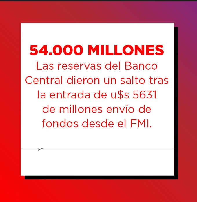 El Banco Central recibió u$s5631 millones correspondientes al segundo envío de fondos tras el acuerdo renovado con el organismo. Los recursos pasaron a engrosar las reservas internacionales del Central, que se ubicaron en u$s54 042 millones. Sumados a los u$s15 000 millones acreditados a fines de junio, la asistencia financiera en lo que va del año acumula u$s20 700 millones.