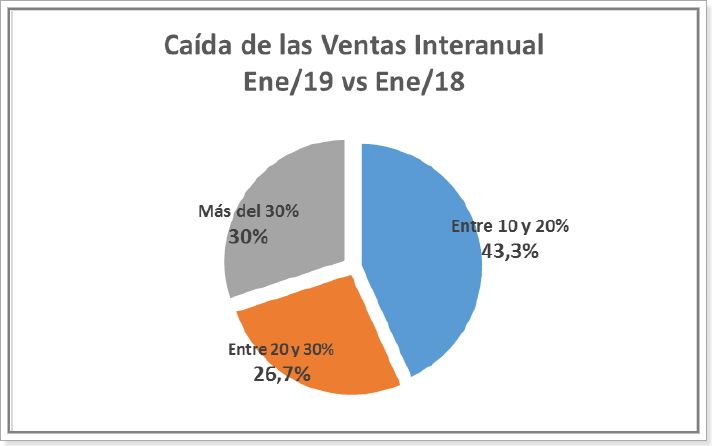 Donde se evidencia una situación realmente complicada del comercio local, más aún si se recuerda que el mes que origina la comparación (enero/18) ya había demostrado muy bajos guarismos de ventas.