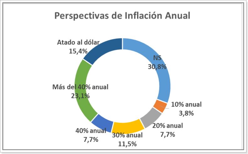 Pero no deja de llamar la atención que los mayores porcentajes indican perspectivas de tasas anuales de inflación del orden del 30%, 40%, como así también atado al tipo de cambio.