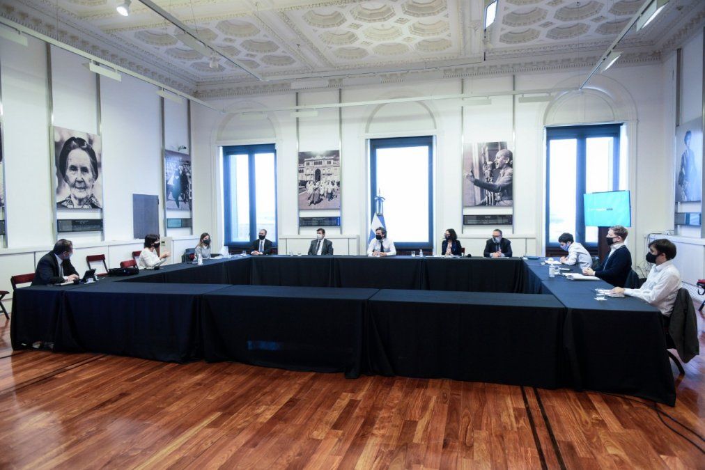 La reunión fue encabezada por el jefe de Gabinete, Santiago Cafiero, y participaron: el ministro de Economía, Martín Guzmán, y su par de Trabajo y Desarrollo Productivo, Claudio Moroni y Matías Kulfas, respectivamente; la titular de la Afip, Mercedes Marcó del Pont; la titular de la Anses, María Fernanda Raverta; el presidente del Banco Central; Miguel Ángel Pesce y la vicejefa de Gabinete, Cecilia Todesca Bocco.