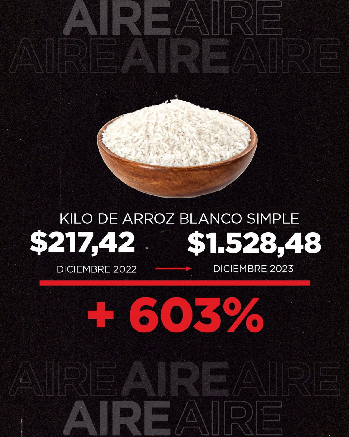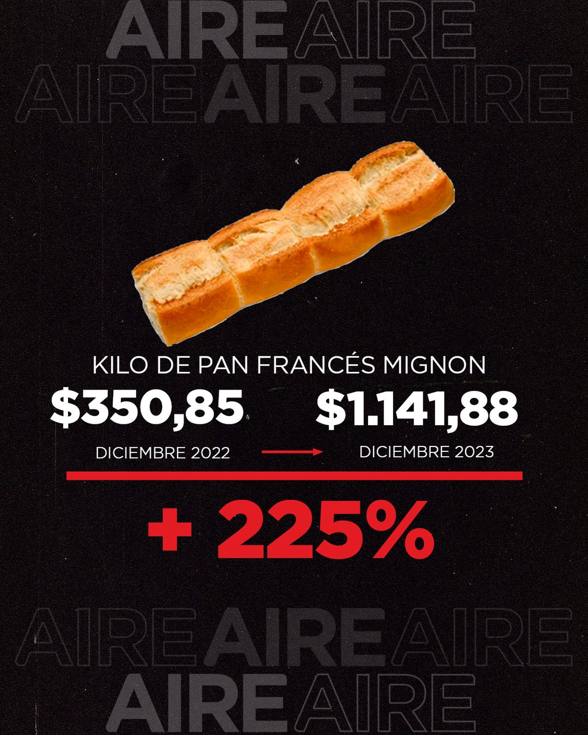 - Pan frances tipo mignón Kg. +225%, esto significa que el precio se triplicó respecto a diciembre 2022