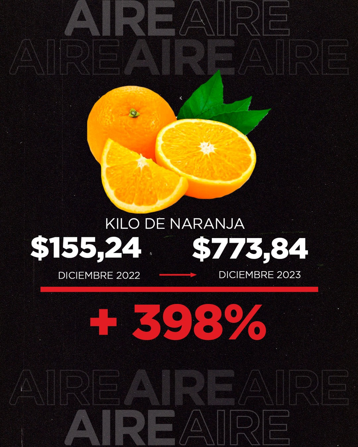 - Naranja Kg. +398%, un aumento cuadruplicado respecto a diciembre 2022