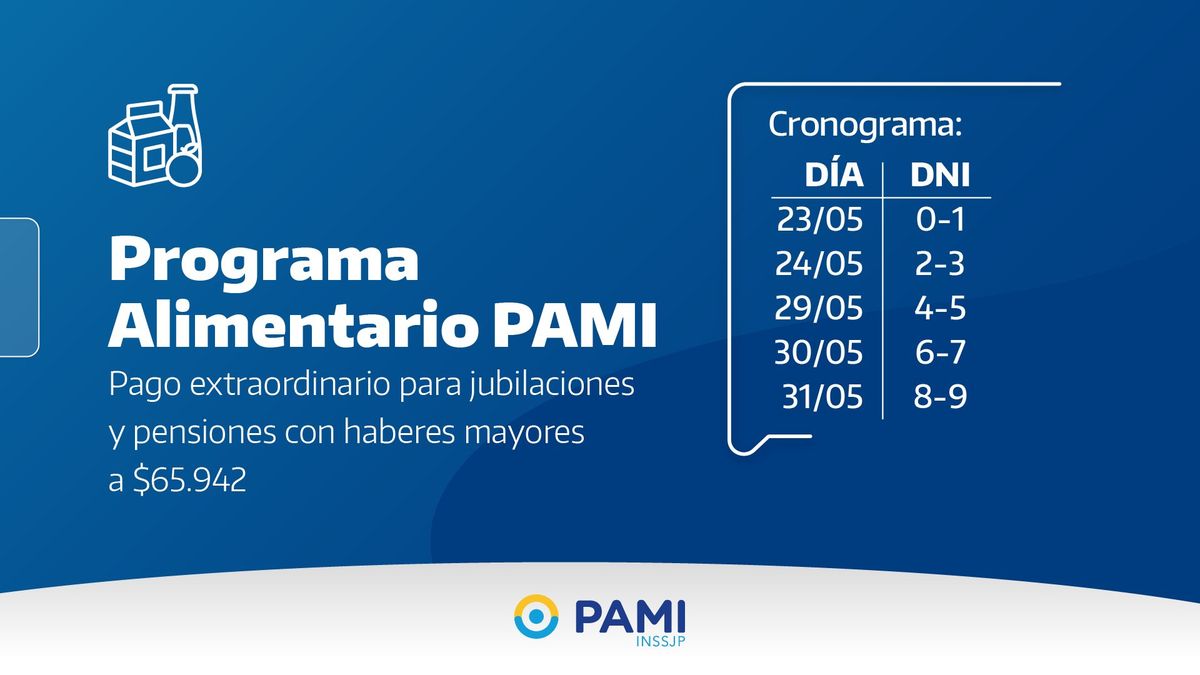 La Dirección Ejecutiva de PAMI anunció un nuevo pago extraordinario de $10.000 para los afiliados del Programa Alimentario. Este beneficiará a más de 1 millón de jubilados de la obra social.