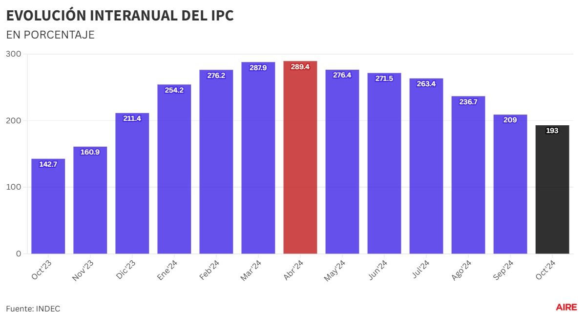 De esta manera, el costo de vida subió 107% en lo que va del 2024 y se ubica en el 193% en la medición interanual.