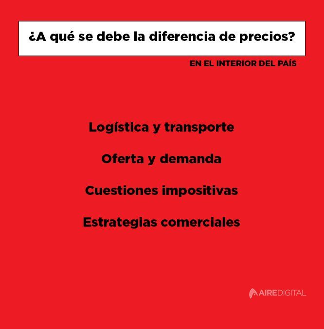 Normalmente se le atribuye la carestía a la logística y el transporte. Por ejemplo, para distribuir nafta de YPF (Yacimientos Petrolíferos Fiscales) hacia el noroeste del país o hacia el sur, no sólo se utiliza un camión. El combustible que llega a Salta viaja desde La Plata por un oleoducto hasta Rosario. Luego va en barcazas hasta el puerto de Barranqueras y desde ahí viaja en un camión.