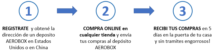 Al hacer una compra en cualquier tienda online del extranjero (Amazon.com, Ebay.com, Alibaba.com, Carters.com, Wish.com, entre otros), solo debes colocar la dirección de entrega del depósito AEROBOX asignado. Ellos reciben los pedidos, te notifican con foto y descripción; confirmas que este todo correcto y en 4 días hábiles está disponible en sus oficinas de Buenos Aires para realizar la entrega a domicilio. ¿Un plus? Las entregas al interior del país son sin cargos adicionales.