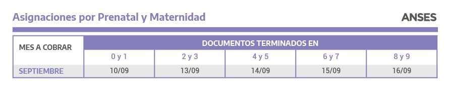 El calendario de pagos de Asignación por Prenatal y Asignación por Maternidad
