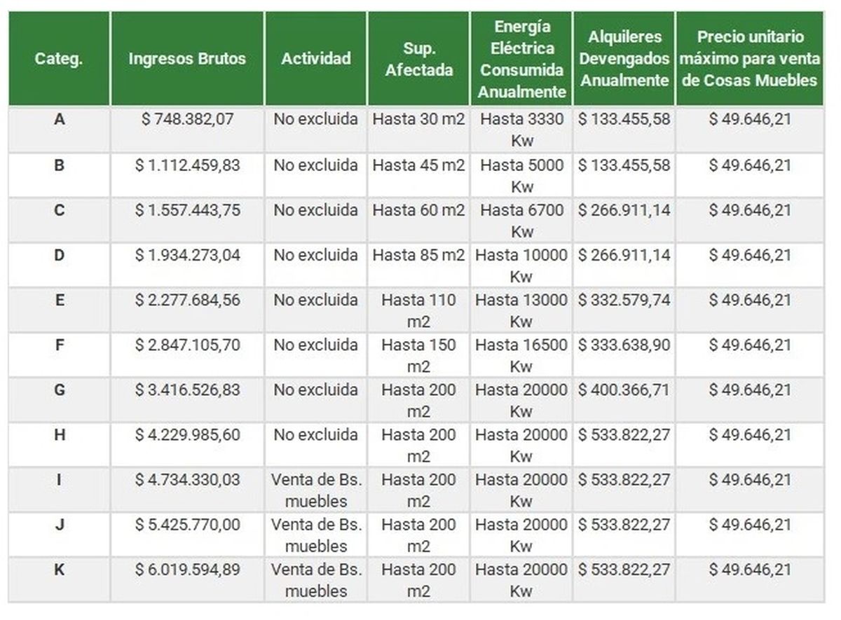 La ley 24977 en su artículo 9° estipula lo siguiente: A la finalización de cada semestre calendario, el pequeño contribuyente deberá calcular los ingresos brutos acumulados, la energía eléctrica consumida y los alquileres devengados en los doce (12) meses inmediatos anteriores, así como la superficie afectada a la actividad en ese momento. Cuando dichos parámetros superen o sean inferiores a los límites de su categoría, quedará encuadrado en la categoría que le corresponda a partir del segundo mes inmediato siguiente al último mes del semestre respectivo
