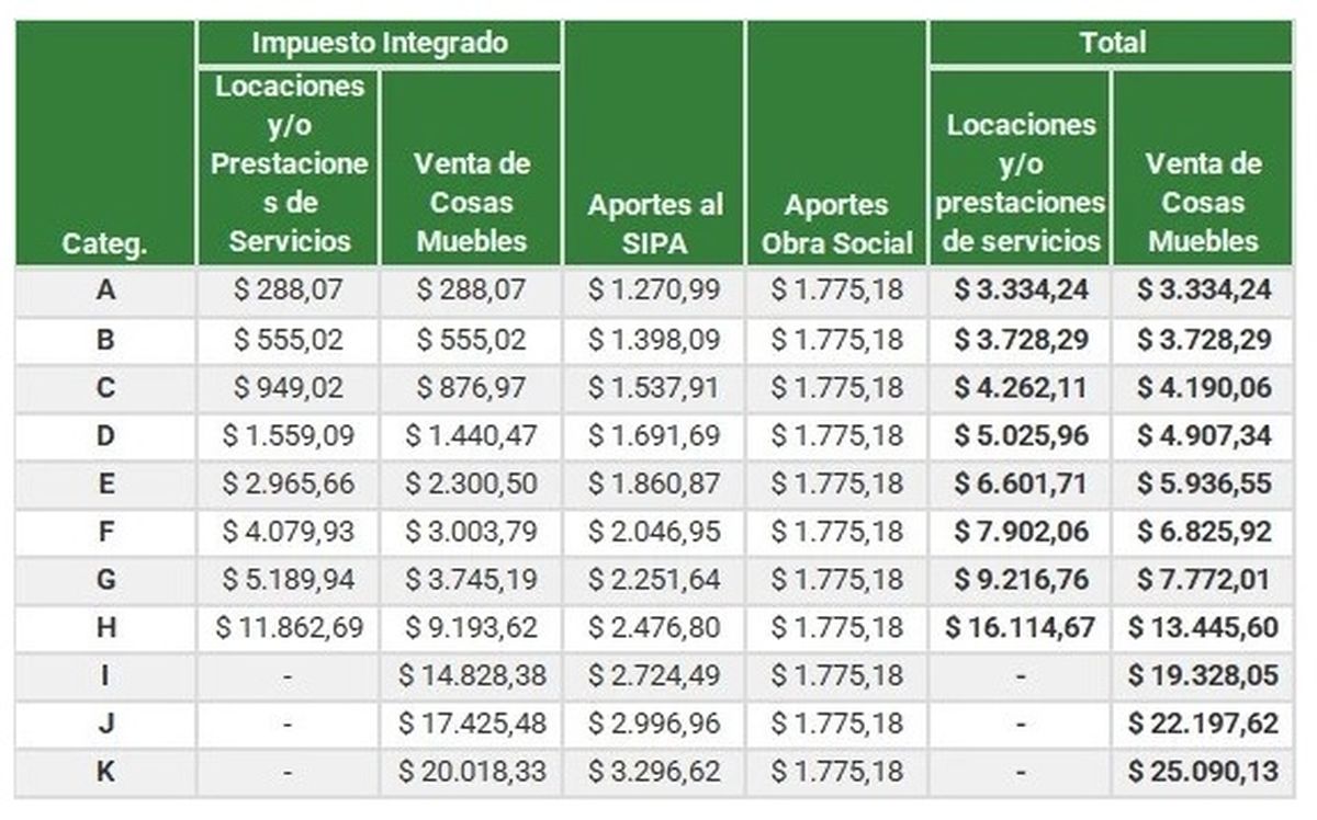 El total de los valores que nos arroje cada parámetro, habrá de compararse con la tabla de AFIP, recientemente actualizada por la Ley de Alivio Fiscal (se puede consultar ingresando aquí: https://www.afip.gob.ar/monotributo/categorias.asp), y recategorizarse a la categoría que corresponda según el parámetro más alto.
