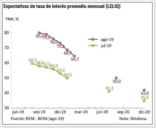 Según el último Relevamiento de Expectativas de Mercado (REM) del mes de agosto, que realiza el Banco Central de la República Argentina (BCRA). Para los próximos meses los analistas estiman que la actividad económica no se recupere, que las tasas continúen siendo elevadas. Que el dólar tenga una corrección al alza, dentro de rangos acotados de variación y se ajustó hacia arriba las expectativas de inflación para el cierre de este año.