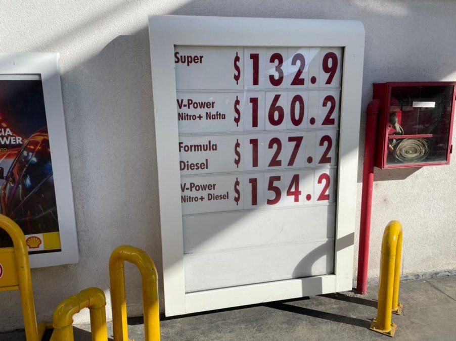 En las estaciones de servicio Shell también impactó el aumento: desde este domingo, el litro de nafta Súper cuesta $132,90, y el gasoil cuesta $127,20. El valor del litro de V-Power pasó a costar $160,20.