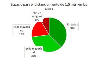 -En el 27% de las instituciones relevadas no se cumple con el distanciamiento de 1,5 metros entre estudiantes.