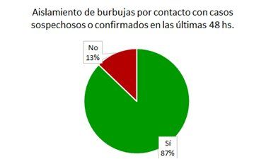 -En el 13% de las instituciones relevadas no se cumple con el aislamiento de las burbujas cuando han tenido contacto con un caso sospechoso o confirmado en las últimas 48 horas.