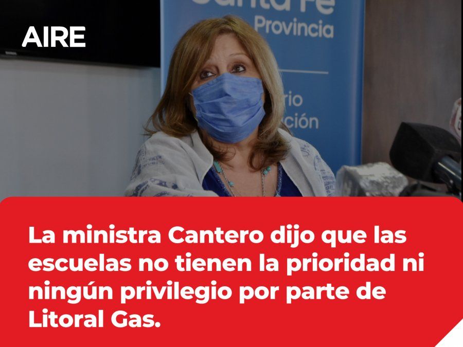 Acerca de los cortes en las escuelas, la ministra de Educación, Adriana Cantero, explicó que los códigos de inspección de Litoral Gas, “variaron en los últimos años y de acuerdo a estos se realizaron inspecciones que requieren obras para lo que es necesario cortar el servicio”. La funcionaria dijo que están trabajando en brindar a las 500 escuelas las asistencias necesarias para restituir los servicios pero que la solución no depende del Ministerio, sino de Litoral Gas que es “un organismo externo que afecta las escuelas”.