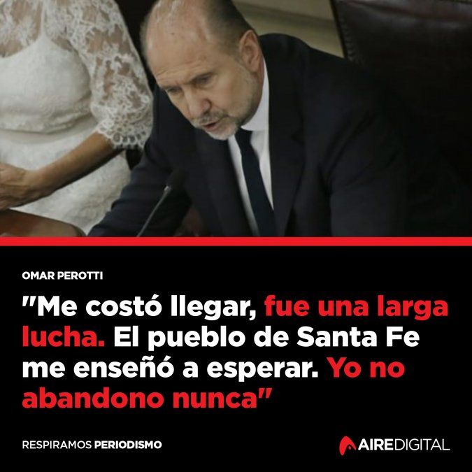 Luego de las juras de Alejandra Rodenas y Omar Perotti, el gobernador electo brindó un discurso que no estuvo exento de críticas a la gestión socialista.