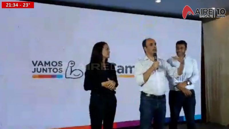Cerca de las 9, en el búnker de Cambiemos, José Corral también tuvo un discurso de tono triunfalista a pesar de que quedó tercero y muy lejos de Bonfatti y Perotti.