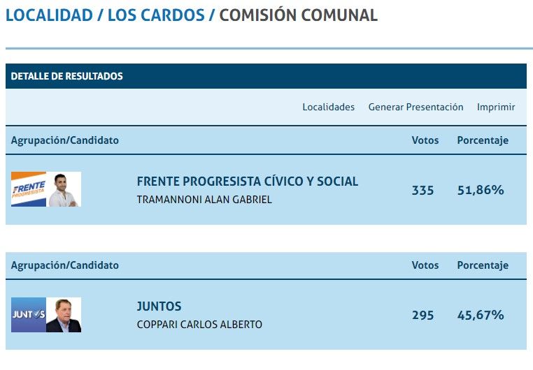 En Los Cardos, departamento San Martín ubicado en el sur de la provincia, el candidato del FPCyS le sacó 40 votos al de Juntos en la categoría Comisión Comunal y todavía queda una mesa sin computar que podría cambiar el resultado.